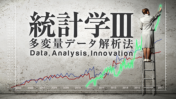 本講座は、日本統計学会と日本行動計量学会の協力のもとに作成され、統計学Ⅰで学んだデータ分析の基礎および統計学Ⅱで学んだ推測統計の方法に引き続き、多変量データ解析手法について学習します。実際のデータは複数個の測定項目からなる多変量データであることが多く、そのようなデータの統計解析手法の学習は、統計手法の現実問題への応用で極めて重要なものです。本講座では、多変量解析法を実際のデータに適用する際の注意点や実際の応用例を中心に学習をします。