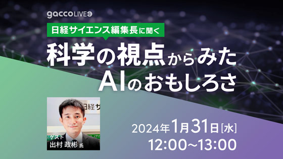 今回のgacco LIVEでは、日経サイエンス編集長の出村政彬さんをお招きして、AIの“科学の視点から見たおもしろさ”について伺います。